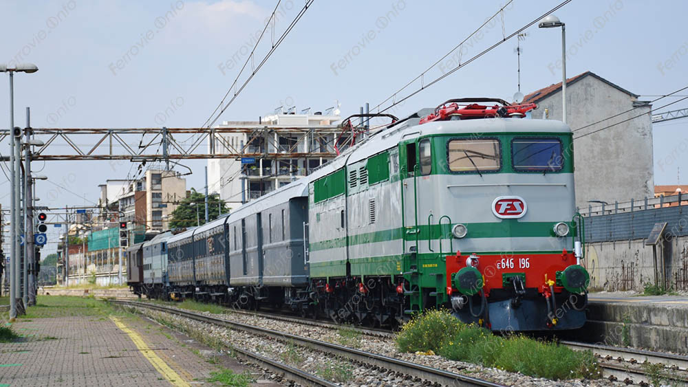 Per effettuare il trasferimento a La Spezia è stata inviata lo scorso lunedì la altrettanto bella E.646.196 che è salita con un bagagliaio e due carrozze Centoporte in cromia Grigio Ardesia. Questa macchina si è resa quindi protagonista della discesa con la E.636.117 inserita in coda alle tre vetture appena citate e seguita a sua volta da un bagagliaio in Castano e Isabella.
