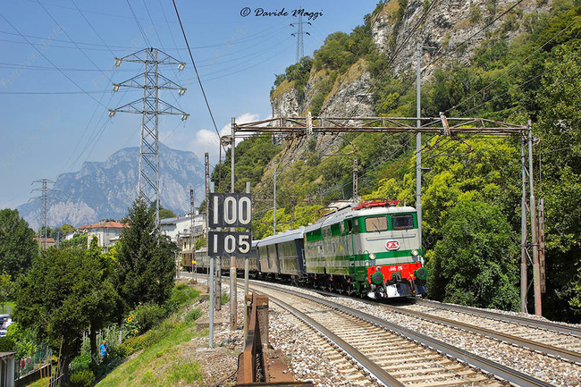La foto in apertura, di Davide Maggi, ci mostra proprio il trasferimento, focalizzando a Dorio l'attenzione sulla E.636.117 stessa. Lo stesso fotografo ci mostra poi la composizione completa a Vercurago, con la bellissima E.646.196 che palesa i suoi colori d'origine.