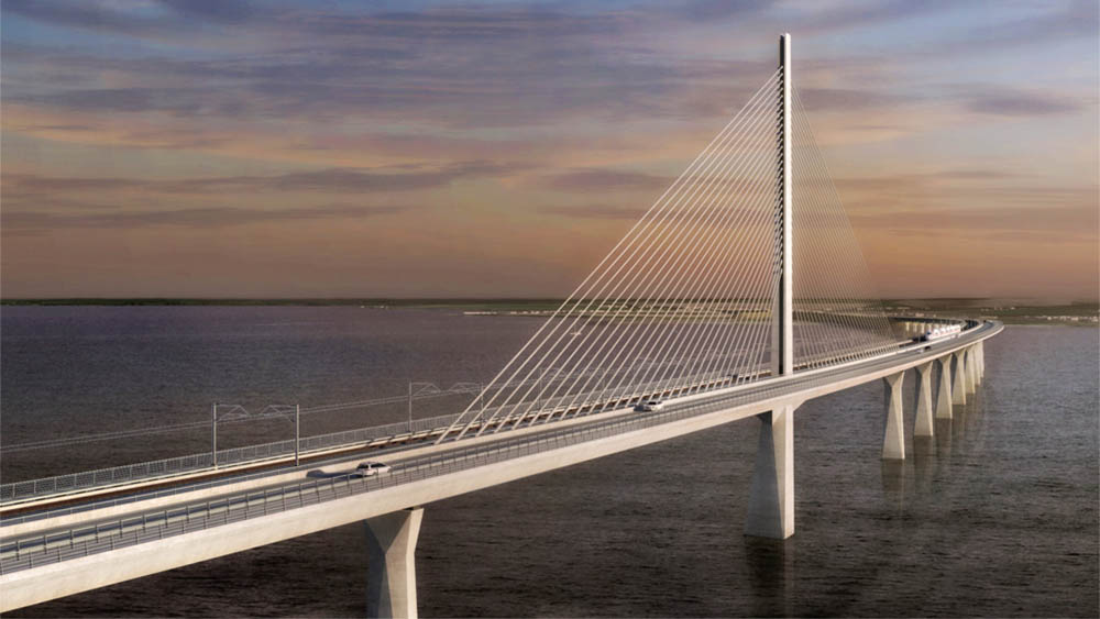 La costruzione del ponte comporterà un uso intensivo di elementi prefabbricati in calcestruzzo sia per l’infrastruttura: fondazioni, pile, travi del ponte sia per la sovrastruttura a piattaforme prefabbricate precompresse dove il sistema Slab Track System ARIANNA di WEGH Group verrà utilizzato per gli 8 km della linea principale, cosi come verranno realizzate piastre speciali per i giunti di espansione della rotaia e per le zone di transizione con i binari tradizionali (ballasted) alle estremità del ponte.