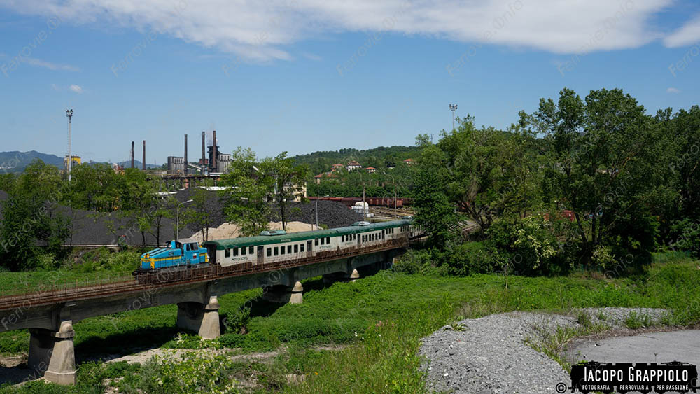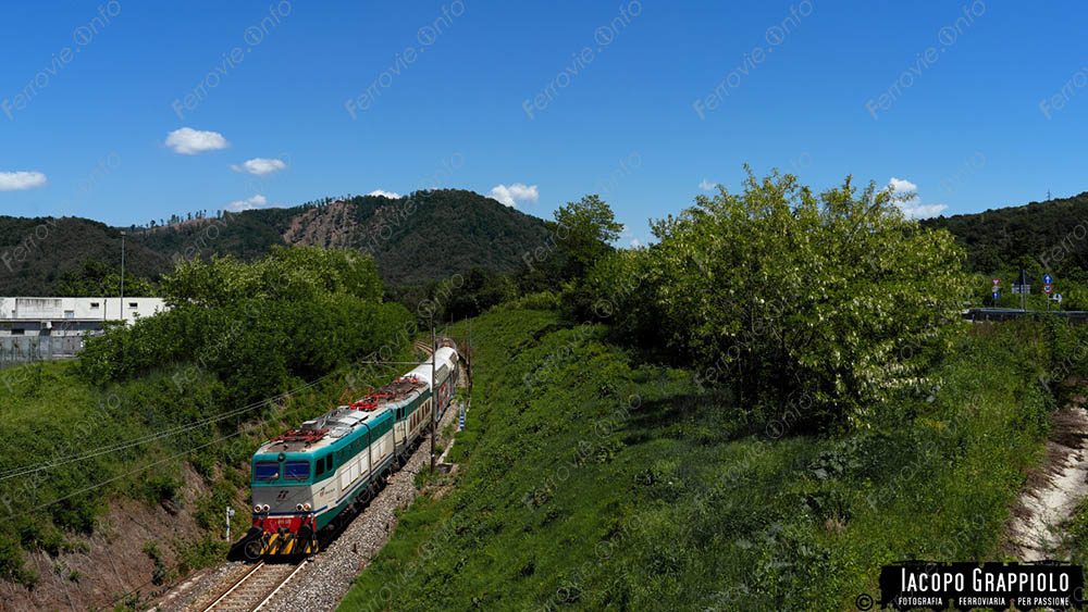 La E.655.532, titolare del convoglio, aveva dietro di sé la E.656.552 già utilizzata da RFI oltre alle due elettromotrici ALe 801.009 e ALe 940.038, il tutto proveniente da Savona. In questo caso lo vediamo grazie alla foto di apertura di Iacopo Grappiolo che ha documentato anche il ritorno delle vetture scudo con il locomotore della ditta.