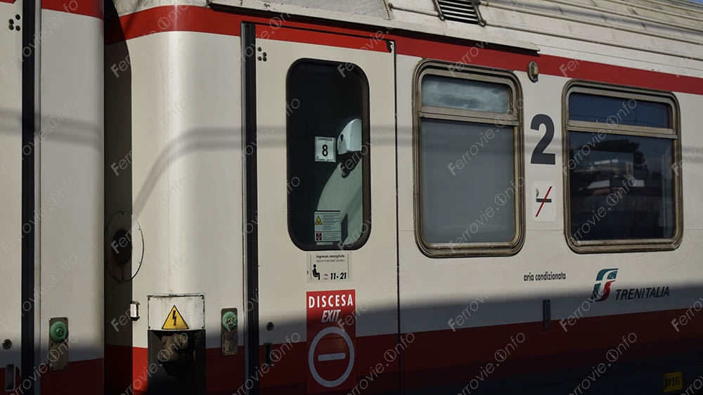 Identificativi che abbiamo visto dapprima sui treni regionali (TAF e Vivalto su tutti) e che lentamente si stanno espandendo su tutta la flotta di Trenitalia. Più particolare invece è il dispenser di igienizzante posto sempre nelle vicinanze della porta.