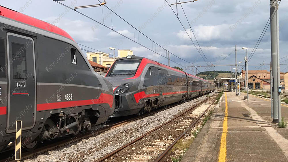 Per l'esattezza si è trattato dei treni 4883 e 4811, rispettivamente ETR 700 n.17 e n.11. Una volta tanto, viene da dire, è stato utilizzato dunque il gancio automatico frontale, spesso criticato per apparire in maniera piuttosto sgraziata dalla "bocca" che non prevede un guscio di copertura.