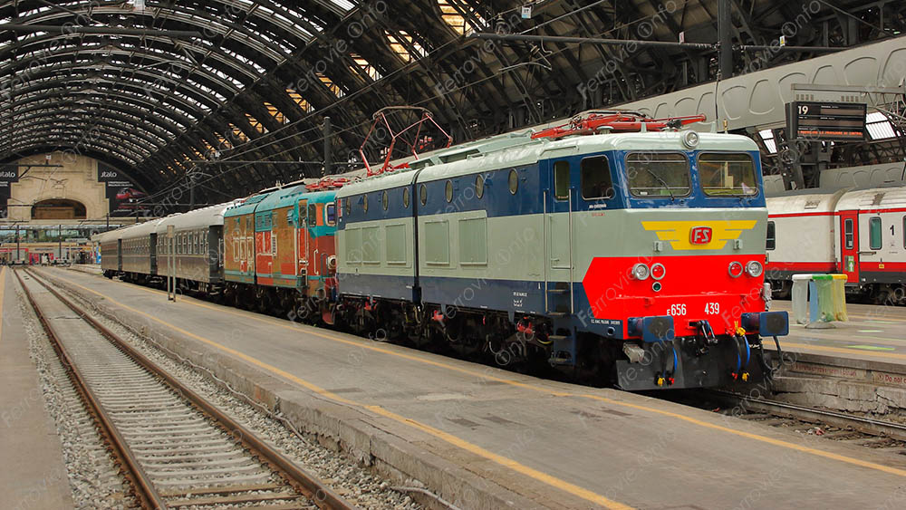 Dalla stazione di Milano Centrale è infatti partito un convoglio per La Spezia Migliarina composto dalla E.656.439 con al seguito la E.645.084 e tre vetture Grigio Ardesia.