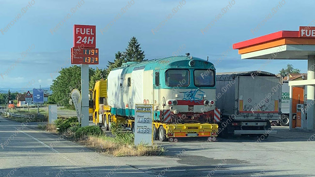 Nella foto che ci ha spedito si vede un bilico che ha un carico davvero insolito costituito dalla D.445.1071. La macchina ci risultava in servizio a Treviso ma a occhio e croce non è più così.