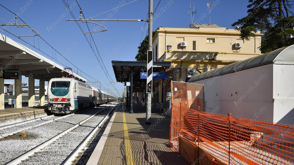 Nelle foto di Davide Lippolis a Polignano possiamo vedere il Frecciabianca tra Lecce e Venezia Santa Lucia effettuato con E.402B.120 in livrea Intercity Giorno ed E.402B.105 in XMPR.
