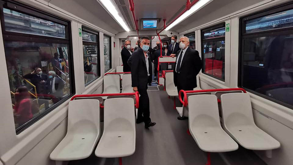 “Sono stati consegnati questa mattina ulteriori due treni revampizzati – spiega De Luca – che si aggiungono ai quattro nuovi treni già in esercizio. Un investimento di 40 milioni di euro per immettere complessivamente nuovi 25 treni sulle linee vesuviane e migliorare il servizio di trasporto per i cittadini”.