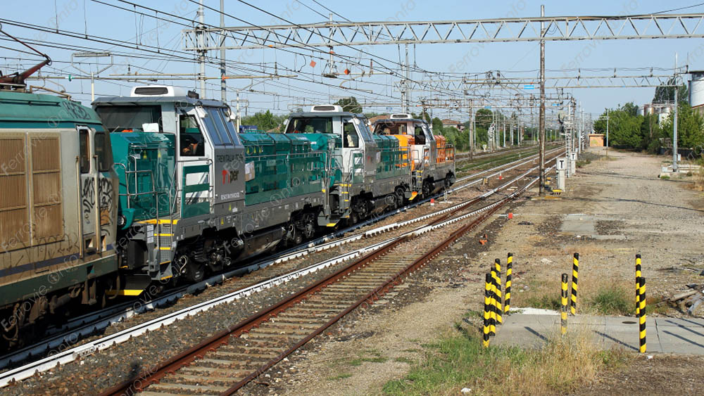 Le macchine, distinguibili per la livrea (toni di verde per le Tper e di arancione per Dinazzano Po), sono state trainate fino a Reggio Emilia dalla E.652.164 in cromia XMPR, con trazione quindi a carico di Mercitalia Rail.