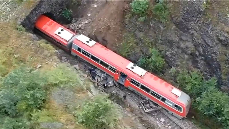 Un treno che viaggiava sulla tratta Kraljevo-Raska, in Serbia, è deragliato nei pressi del monastero di Stara Pavlica a causa dello smottamento di una grande quantità di rocce sul binario.