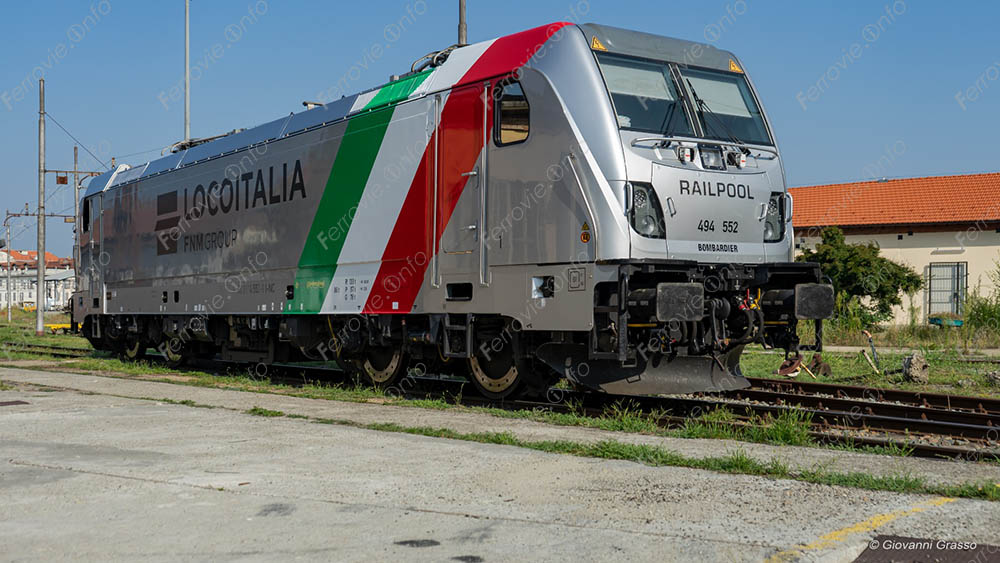 È stata riconsegnata infatti nella giornata di oggi dalle officine Tiber.Co di Asti la 494 552 ex LocoItalia che ha già perso la sua originale cromia argento e blu in favore di una più "patriottica".