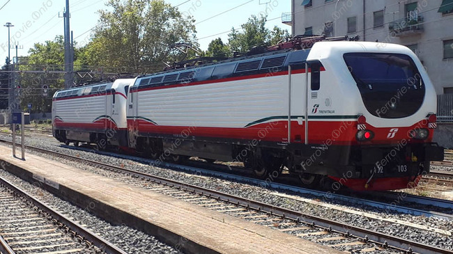 Con il segmento Frecciabianca in forte riduzione, la livrea cambia anche se rimane molto simile alla precedente. Nella giornata di oggi è infatti uscita dalle OMC di Foligno la prima unità nella cromia rivista, la E.402B.103.