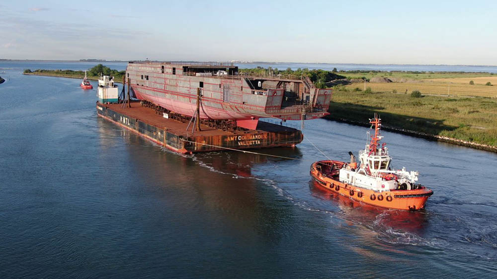 Il programma delle attività ha subito diverse variazioni a causa della complessità delle operazioni e nel rispetto delle norme imposte dall’attuale emergenza sanitaria Covid-19. Grazie alla professionalità e alla consolidata sinergia tra le aziende coinvolte, i tecnici di Cimolai, Fagioli e Rina, le maestranze locali, la Capitaneria di Porto di Monfalcone, Nogaro e Grado, i piloti, gli ormeggiatori, i rimorchiatori portuali e d’altura, le agenzie marittime e tutti i professionisti coinvolti, è stato possibile portare a termine l’operazione in piena sicurezza.