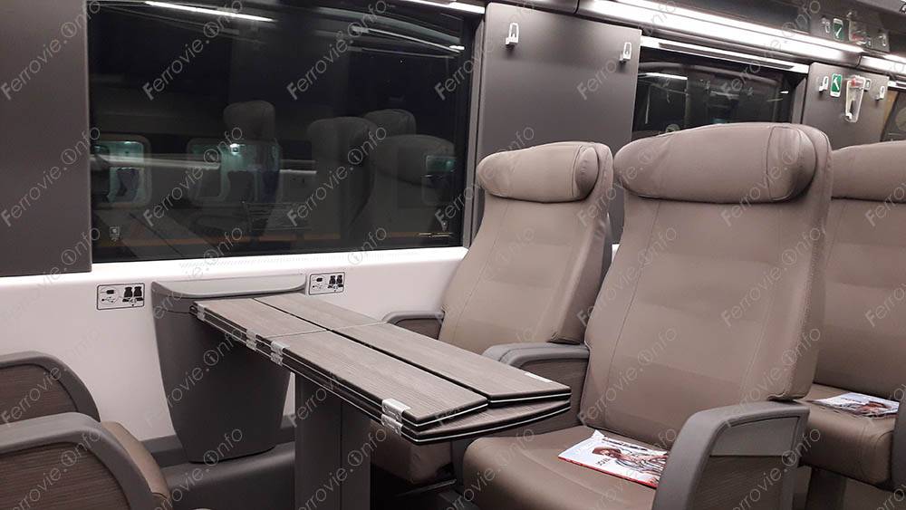 Sono disponibili due prese elettriche e due prese USB per la coppia di posti oppure per il posto singolo. Lo spazio per i bagagli è inferiore a quello che si può trovare su ETR 500 ed ETR 400, specie per i vani portabagagli posti tra i sedili e le rastrelliere nei vestiboli, che sono meno ampie.