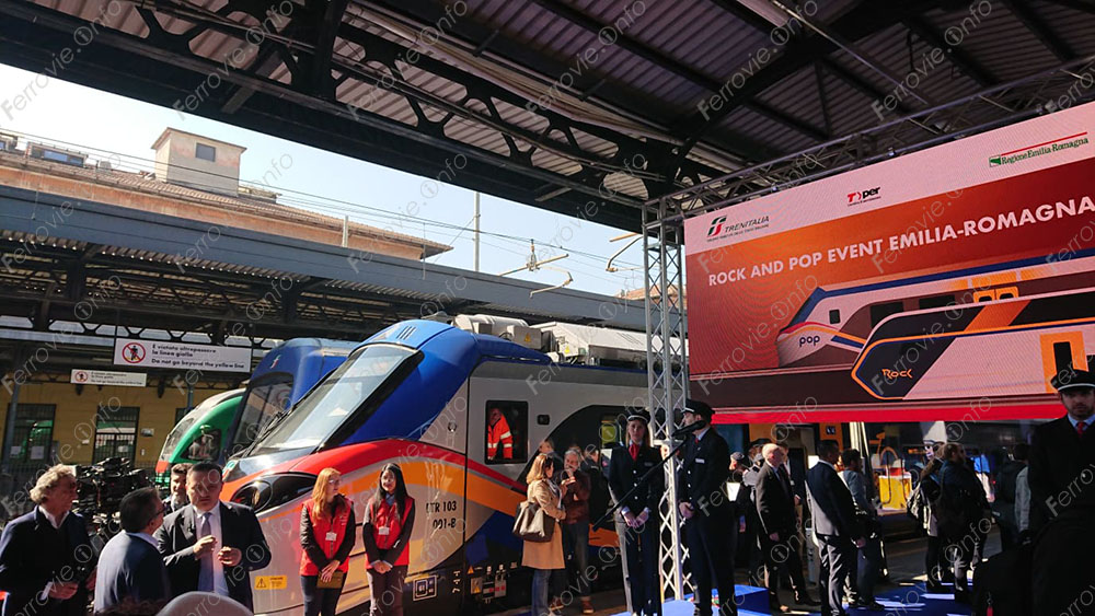 In una Bologna Centrale baciata dal sole, si celebra l'arrivo in “famiglia” Trenitalia degli Elettrotreni Pop e Rock: il primo di costruzione Alstom, a media capacità, il secondo di costruzione Hitachi Rail Italy ad alta capacità.