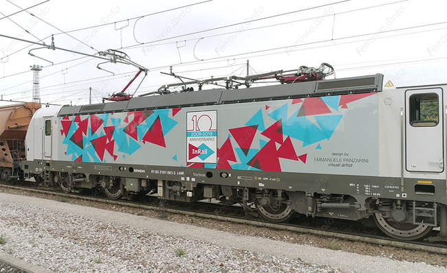Poter celebrare questo traguardo con una locomotiva speciale è stata una bellissima intuizione da parte di InRail, la quale mi ha chiesto di ideare e sviluppare il logo commemorativo inserito poi nella livrea.