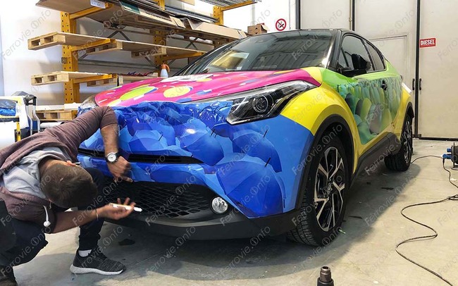 Un paio di anni fa mi è venuto in mente di utilizzare l'immagine di una mia installazione per “wrappare” artisticamente più di 30 auto di cortesia per un'importante concessionaria in Veneto. Il progetto ha avuto un grande successo mediatico per la sua unicità e capacità di creare un forte engagement con il pubblico.